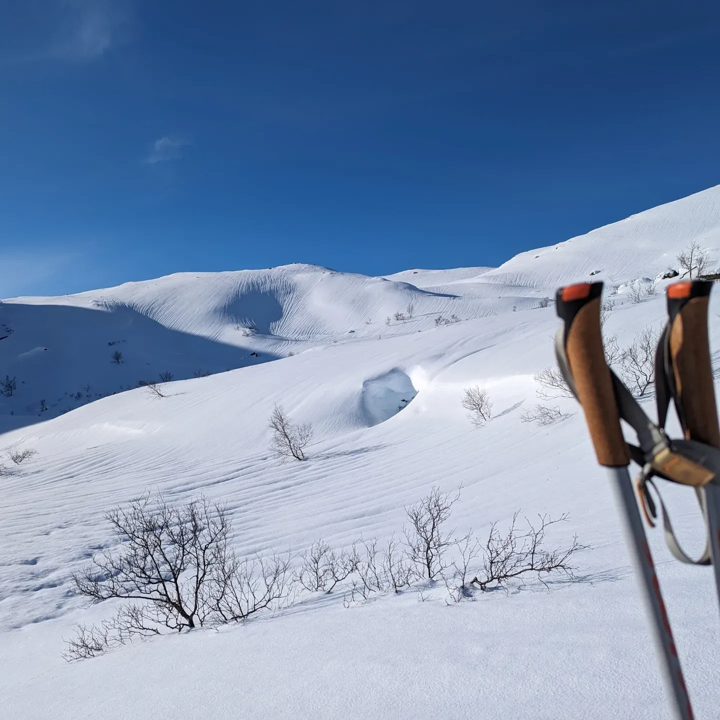 Vinterstid byr denne turen på flotte nedkøyringar både frå Ulvedalseggane og Skorvane.